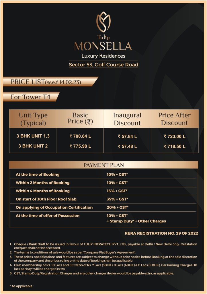 Tulip Monsella’s prime location ensures easy access to reputed schools, hospitals, shopping centers, and recreational spots, enhancing the overall quality of life for its residents.